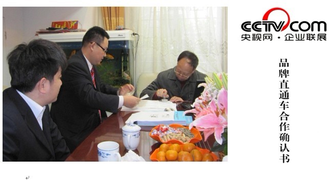 經(jīng)中央電視臺嚴(yán)格篩選,我司與 CCTV 央視網(wǎng)企業(yè)頻道結(jié)為合作伙伴。董事長廖世明先生與央視網(wǎng)代表簽訂為期3年合作合同。這是我公司品牌戰(zhàn)略的又一重大舉措。