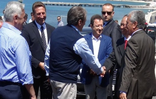 阿爾巴尼亞總理薩利.貝里沙與廖世明董事長一起,參加SASAJ水電站運(yùn)行啟動儀式剪彩并握手談話。薩利.貝里沙總理高度評價由我公司提供的2x4300KW沖擊雙噴嘴水輪發(fā)電機(jī)組,運(yùn)行穩(wěn)定,全自動化程度高,并歡迎我們公司今后能向阿爾巴尼亞提供更多的水力發(fā)電設(shè)備。
